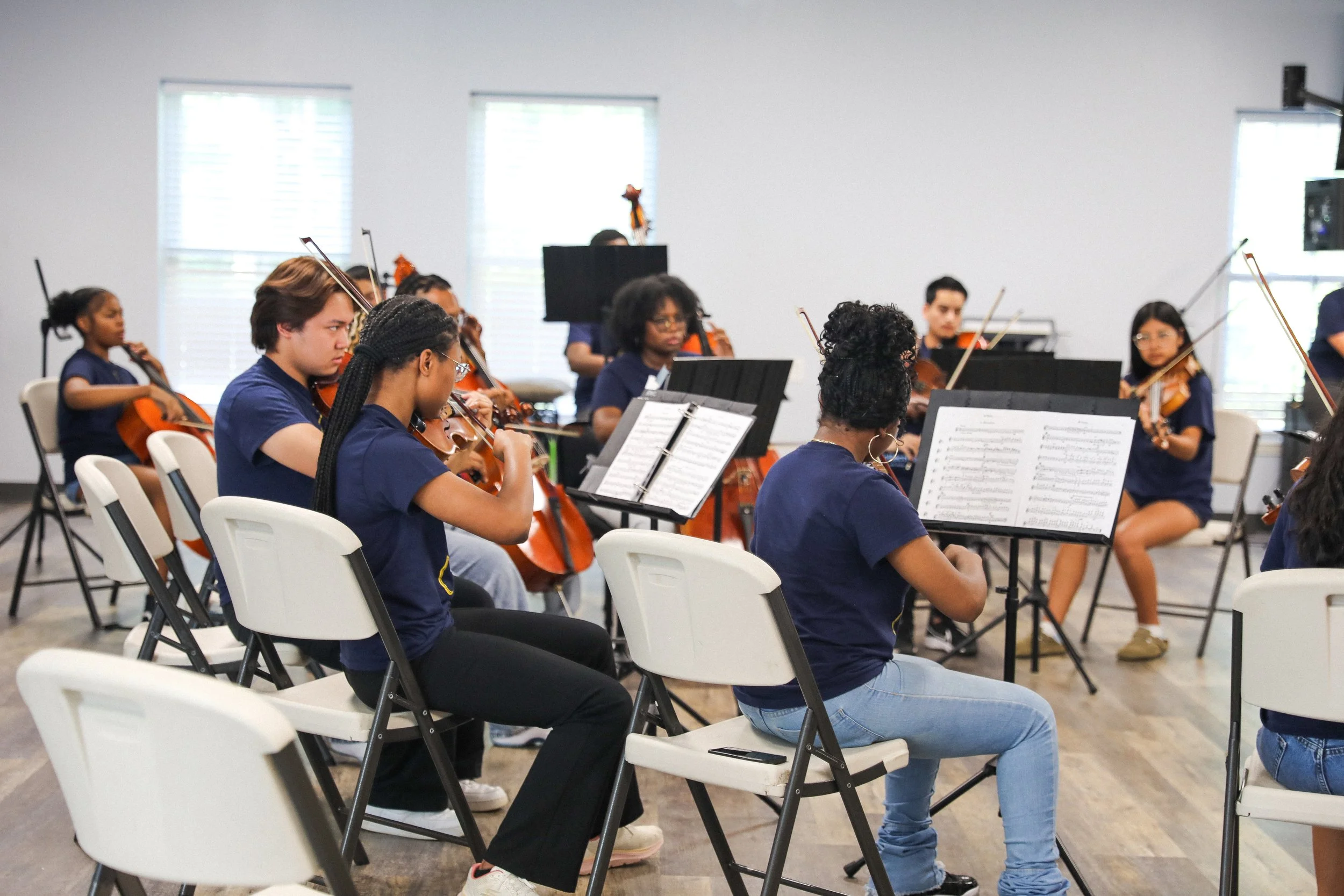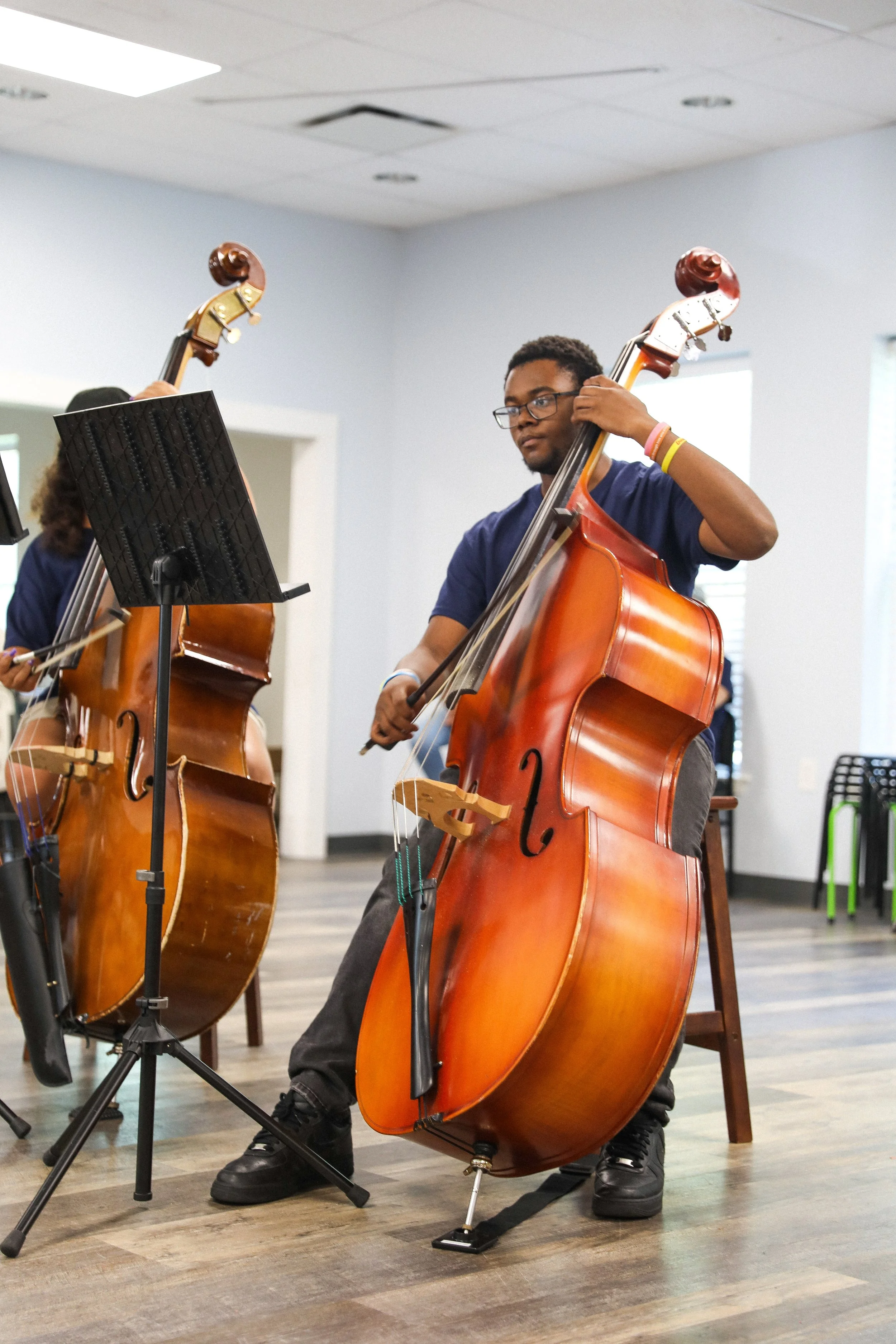 In addition to using the Bornoff Pedagogy, students explore traditional orchestral music and get a chance to explore alternative music styles and skills like jazz, hip hop, improvisation, and roots music.